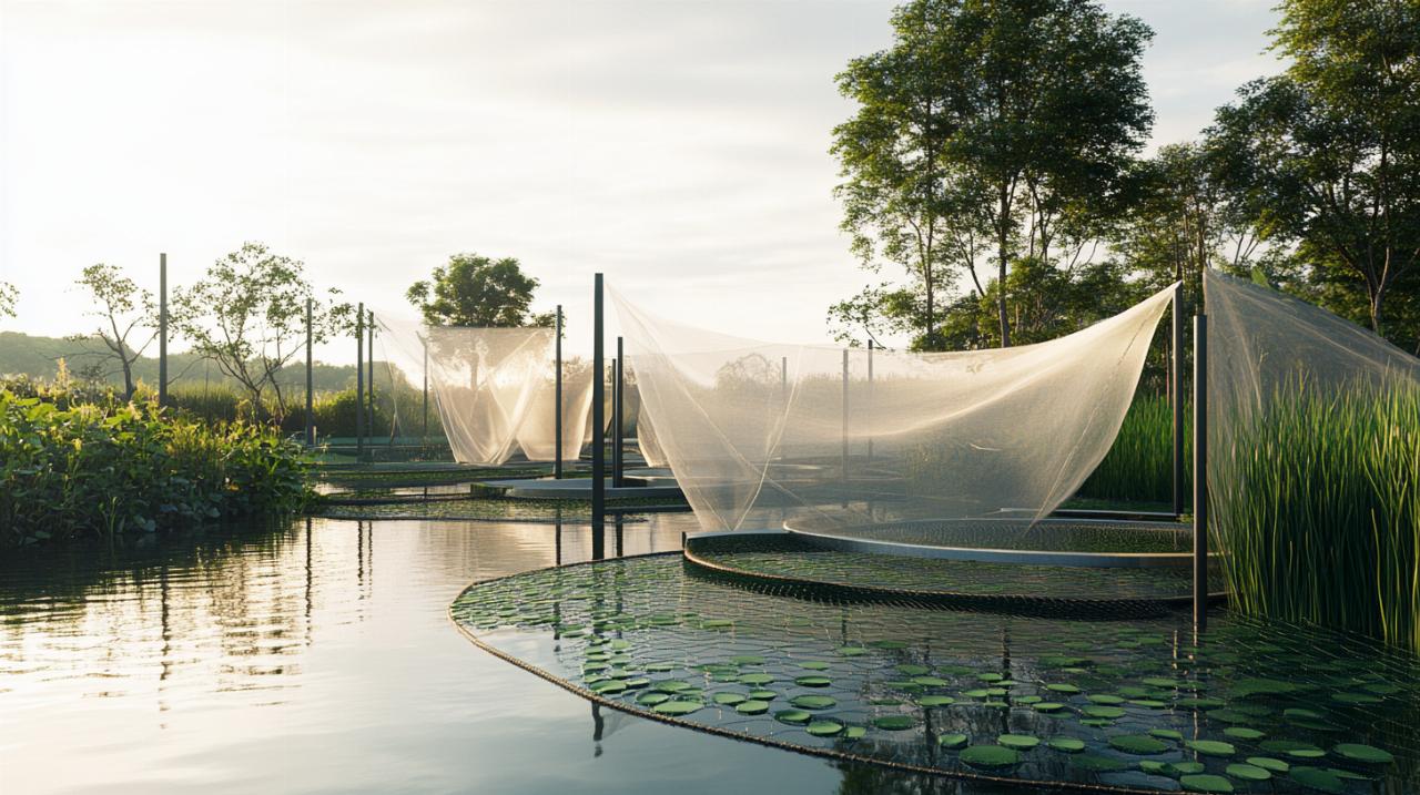 Pour certaines applications spécifiques, les filets peuvent également être utilisés pour le confinement de types particuliers de biomasse dont les caractéristiques physiques nécessitent un maintien en position déterminée. Les substrats fibreux ou les matériaux à tendance flottante, par exemple, bénéficient d'un confinement qui les maintient dans la zone active du digesteur où les conditions de température et de brassage sont optimales. Cette gestion fine de la distribution spatiale des matières organiques permet d'exploiter pleinement le volume disponible du digesteur et d'augmenter sa capacité de traitement effective sans nécessiter d'agrandissement des infrastructures.